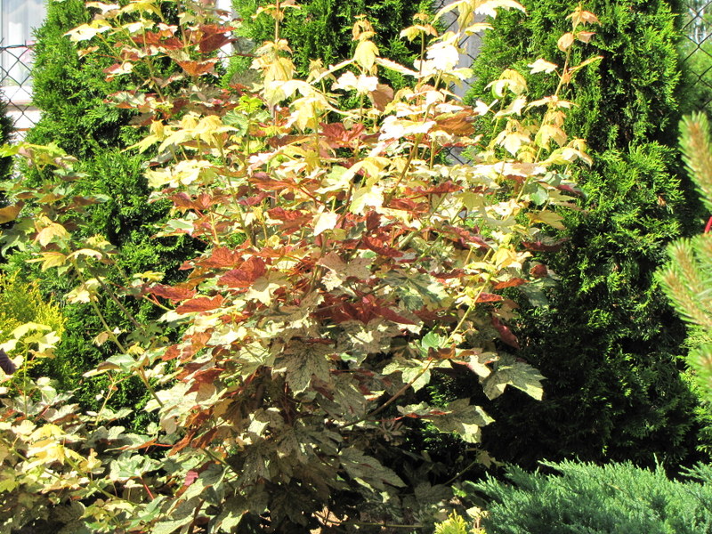 Patrząc na ten klon pomyślałam, że nie jest łatwy do zestawień kolorystycznych. Może dlatego w Arboretum rósł jako soliter ;).
