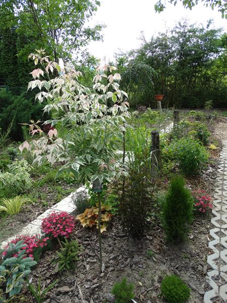 A ja lubię klon jesionolistny 'Flamingo', bo rośnie zdrowo i świetnie kontrastuje z zielonym otoczeniem. Co roku, wiosną mocną przycinam. Po siedmiu latach uprawy wygląda z goła odmiennie niż u Beatki gwizdac