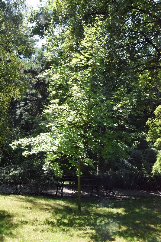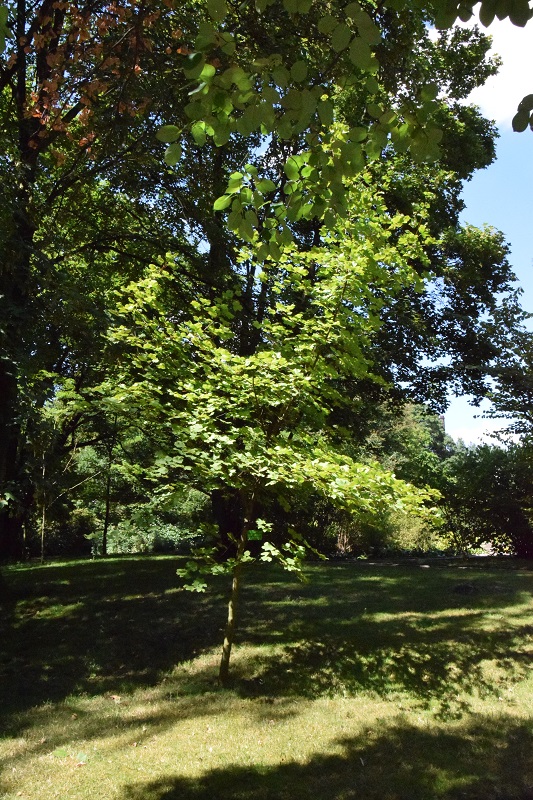 Pochodzenie: występuje na stanowiskach naturalnych w Ameryce Północnej, rośnie w wilgotnych, skalistych glebach nad brzegami rzek, wąwozami, lasami i klifami. Wymagania : preferuje glebę umiarkowanie wilgotną do wilgotnej, dobrze zdrenowaną, o lekko kwaśnym odczynie, ale jest tolerancyjny na suszę i zacienienie. Wielkość: na stanowiskach naturalnych dorasta do 8-9 m wysokości. Pokrój: średniej wielkości drzewo, często wielopniowe o dość regularnej, kulistej koronie Liście: dł. 5-9 cm, szerokie, o falistych lub grubo ząbkowanych krawędziach. Jesienią liście zmieniają kolor od jaskrawego żółtego przez pomarańczowy do głębokiej czerwieni. Mrozoodporność: dobra (strefa 5) Uwagi: niektórzy botanicy klasyfikują A.leucoderme jako podgatunek klonu cukrowego: A. saccharum subsp. leucoderme.