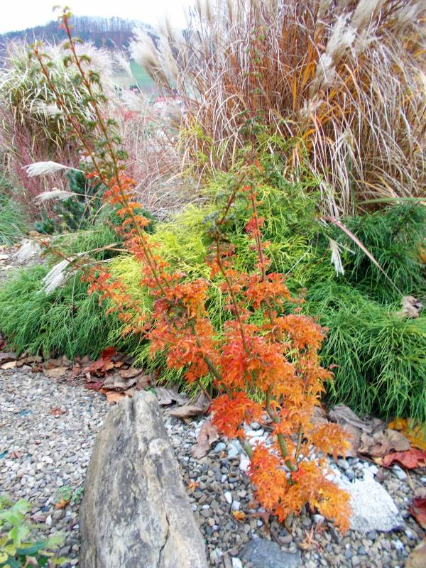 Kiedy większość klonów pogubiło liście,klon Shishigashira dopiero się przebarwił.