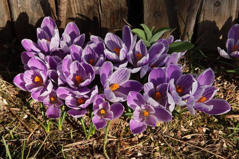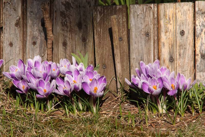 Krokusy 'King of the Striped' rozpoczęły kolejny sezon na najbardziej nasłonecznionym stanowisku.