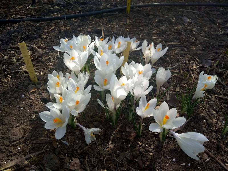 Napisałam wcześniej, ze nie poprzestanę na sadzeniu krokusów 'Jeanne d'Arc'. I dosadziłam kolejne. Z tym, ze te dosadzone jesienią jeszcze są w pąkach, a te sadzone wcześniej wyglądają tak: