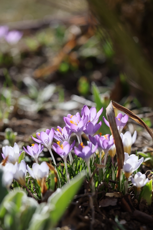 Jako, że pogoda dopisuje, to spędzam zaległy urlop z aparatem w ogrodzie. Dziś spojrzałem teleobiektywem na rządek Krokusów 'Barr's Purple' na obrzeżu trawnika. Nawet przy mocno przymkniętej przysłonie (F14) głębia ostrości jest wciąż widoczna.