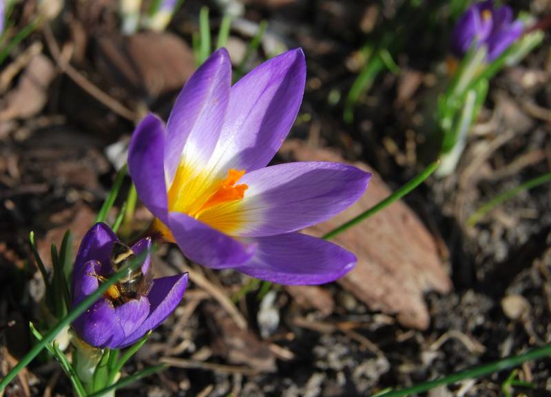 U mnie w tym roku Crocus sieberi Tricolor kwitnie strasznie nierówno. może dlatego, ze tam gdzie jest słońce, w ciągu dnia się ziemia nagrzewa, ale noce chłodne i tam, gdzie słońca niewiele, krokusy dopiero w pąkach.