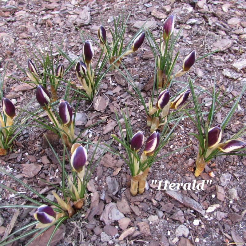 No i doczekałem się Z Krokusem Herald zaczynałem od pojedynczych cebulek, które były pomylone w zamówieniach odmian 'Elegance' i 'Blue Pearl'. Z czasem wydzieliłem kilka cebulek i zrobiło się z tego niewielkie stadko. Na tym stanowisku dwa lata wcześniej posadziłem 8 cebulek. Teraz jest kilkanaście kwiatków