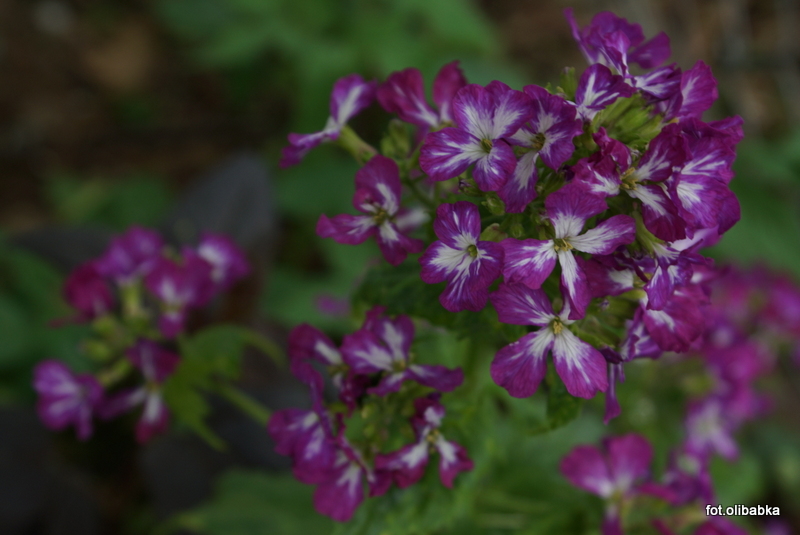 - "Variegata" o biało-zielonych liściach i kwiatach jasnofioletowych.