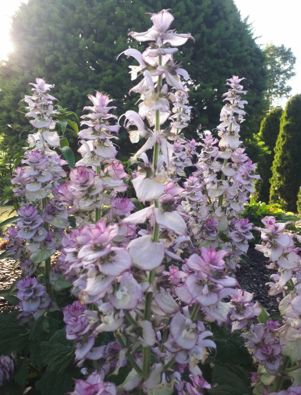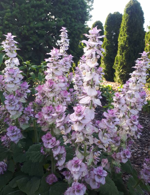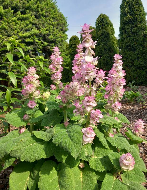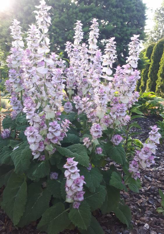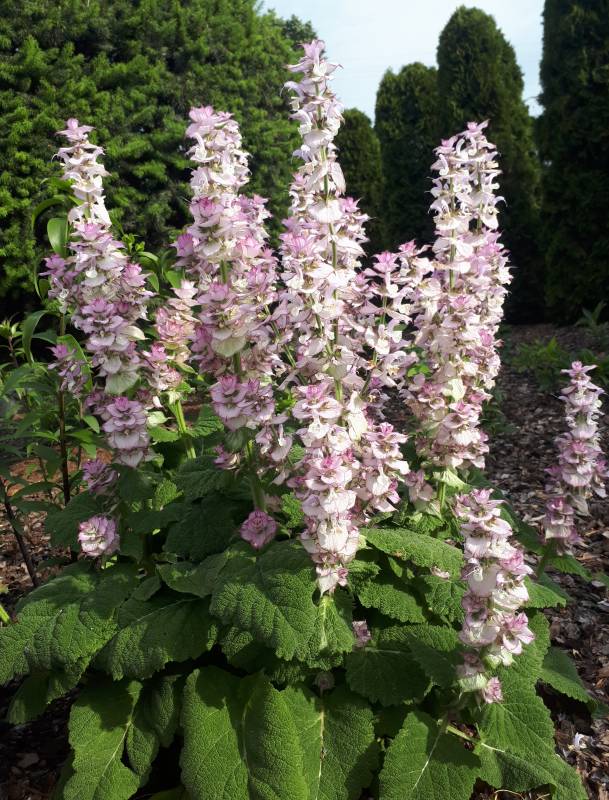 Wysokość: 100-150 cm Kolor kwiatów: jasno różowe, fiołkowoliliowe lub białe, zebrane w szeroką wiechę Liście: owłosione, podłużne, zaokrąglone, jajowate, zielone, o dł. 10-25cm Termin kwitnienia: VI-VII Stanowisko: słońce, półcień Zalecenia: jest rośliną dwuletnią lub krótkowieczną byliną. Jadalna o leczniczych właściwościach. Łatwo się rozsiewa, lubią ją ślimaki. Bardzo atrakcyjna ze względu na kolor i kształt kwiatów oraz eleganckie liście. Może być wykorzystywana w dużych grupach na rabatach bylinowych lub jako soliter. Dobrze komponuje się z różami i innymi bylinami.