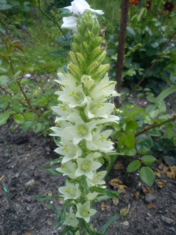 Kwitnie od połowy czerwca, czasem nawet do końca sierpnia. Kwiaty - małe owłosione dzwonki koloru zielonkawożółtego, zebrane w kłosy osiągające wysokość do 60 cm.