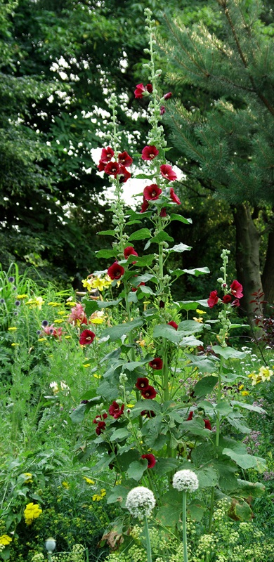 Jest u mnie z samosiewu czarna malwa od kilku lat, na zdjęciu w kompozycji, nie za wysoka, ale urokliwa