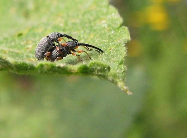 W moim ogródku malwy sieją się same - nie mam ich dużo, ale cieszę się i z tego. Ze względu na słabe warunki (piaszczysta gleba, sucho) nie osiągają u mnie spektakularnych rozmiarów. Czasem łapią rdzę. Trzeci rok obserwuję na nich chrząszcza Apion (Rhopalapion) longirostre , o wdzięcznej polskiej nazwie pędruś długoryjek. Jest to gatunek obcego pochodzenia (głównie Azja Środkowa i Mniejsza), nieinwazyjny, którego larwy żerują w nasiennikach malwy. W Polsce notowany od 2002r. Pędruś sobie żyje i malwy też sobie radzą.