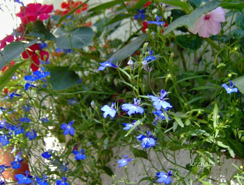 Przez wiele lat z powodzeniem siałam niecierpka Waleriana (Impatiens walleriana), w latach 90 ubiegłego wieku dostałam nasiona zebrane w USA i te były najładniejsze, niziutkie, mocno rozgałęzione, obsypane mnóstwem kwiatów w bardzo wyrazistych kolorach. Potem chyba nie zebrałam nasion, a w sprzedaży na podobne nigdy nie trafiłam. Wzdycham do nich na fotkach papierowych :diabelek .