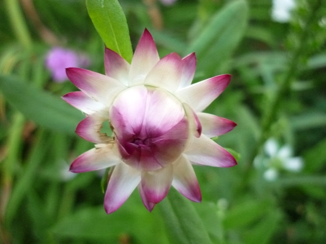 Kwiaty: rurkowate, żółte koszyczki otoczone suchymi, błyszczącymi listkami okrywy. Listki okrywy są w kolorach: biały, żółty, różowy, czerwony, pomarańczowy, brunatny i są największą ozdobą koszyczka kwiatowego. Kwitną od lipca do przymrozków.