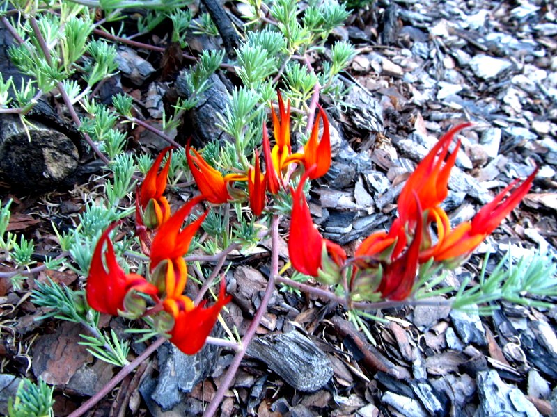Efektowna roślina balkonowa z rodziny Bobowatych (Fabaceae), pochodząca z Wysp Kanaryjskich. Łodygi rozgałęzione (lubi cięcie) zwieszające się lub rozesłane. Liście ma srebrzystoszare, igiełkowate, delikatne. Wiosną pojawiają się wśród nich żółto-czerwonawe kwiaty w kształcie płomieni. Roślina ta nie zimuje w naszych warunkach, bowiem wytrzymuje zaledwie -4 do -5 stopni C. Uprawiana jest zwykle jako jednoroczna.