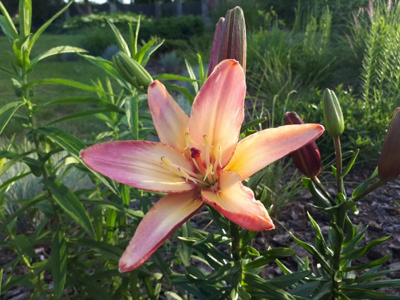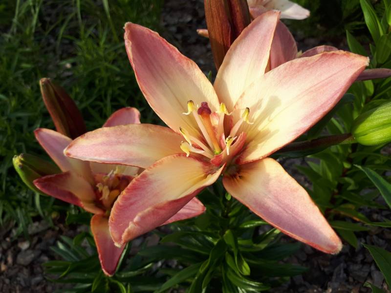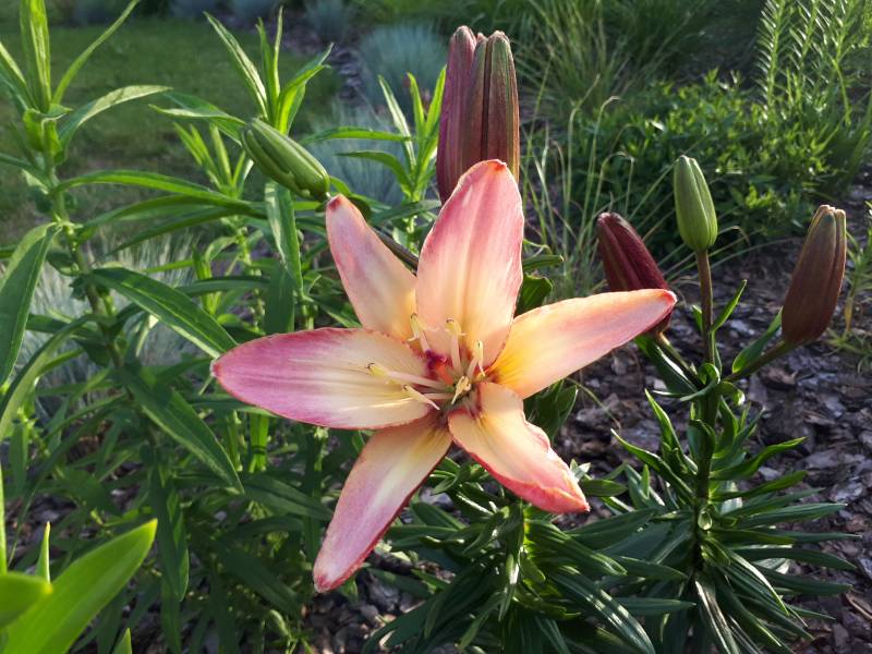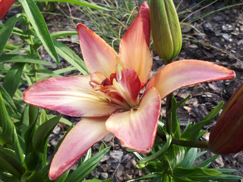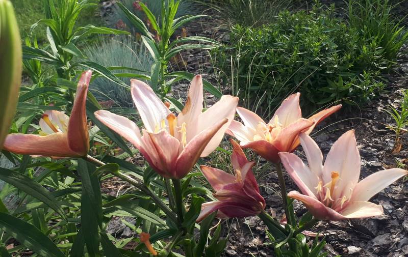 Kwiat: pełne jasno różowe z kremowo -żółtym środkiem, w okresie suszy potrafi rozwijać pojedyńcze kwiaty