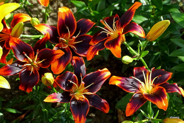 Jak już zakwita, to bardzo licznie. Wiele odmian lilii azjatyckich rozwija kwiaty po kolei. Ta należy do nielicznej grupy, której przedstawiciele otwieraja kwiaty niemal równocześnie.