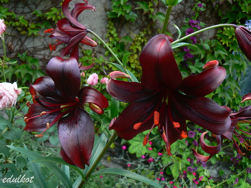 Wysokość: 90-100 cm Kwiat: ciemnopurpurowy, sprawiający wrażenie czarnego. Kwitnienie: VI, VII Wymagania: jak u innych mieszańców azjatyckich - przeciętna ziemia ogrodowa, żyzna i przepuszczalna. Posadzona w półcieniu przepięknie się wybarwia ale nachyla ku słońcu. Mrozoodporność: wystarczająca
