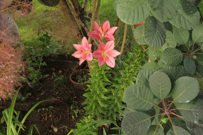 Niezawodnie zakwitła też 'Morpho Pink' nieco skryta pod Rokitnikiem.