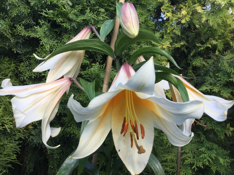Lilia na 100% Golden Splendour - u sprzedawców jej wysokość jest podawana jako 120 cm. U mnie 5 cebul i każda ciągnie do 200 cm - oczywiście mają podporę, bo się pochylają, ale bez śladów "wyciągnięcia".