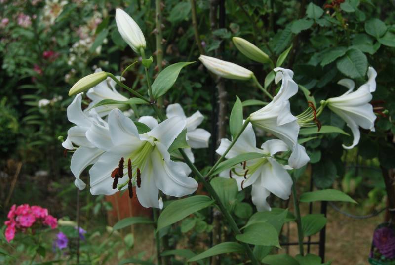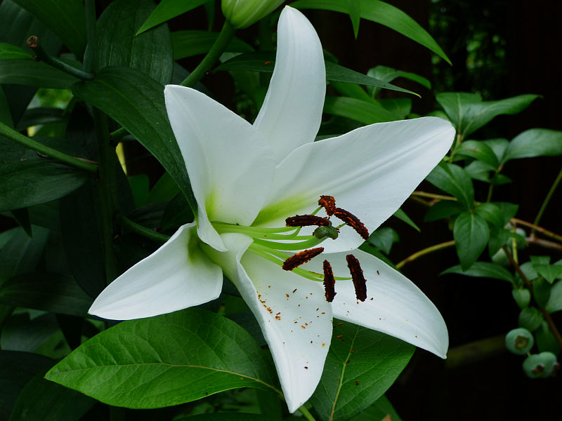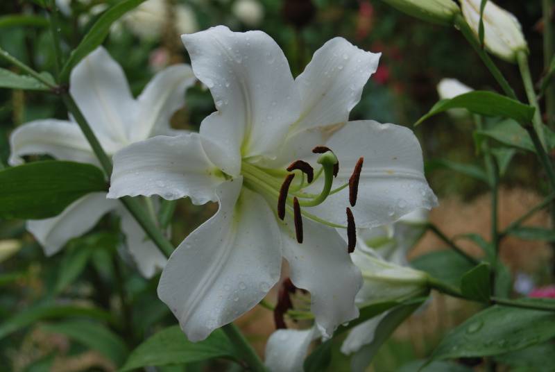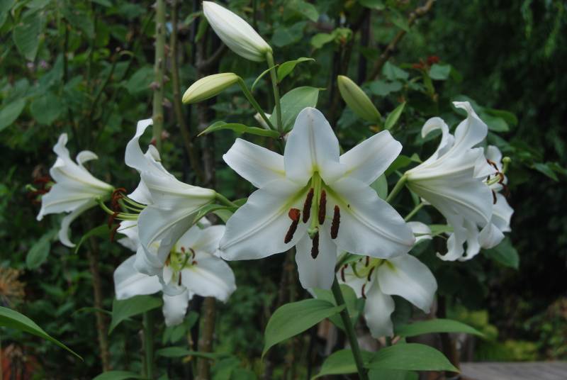 Wysokość: w pierwszym sezonie do ok. 120 cm, starsze egzemplarze do 2 m Kwiat: biały, skierowany na boki, z ciemno brązowymi pylnikami i zielonym gardłem Kwitnienie: VII-VIII Wymagania: przeciętna ziemia z tendencją do lekko kwaśnej, przepuszczalna, stanowisko: pełne słońce Zapach: silny Mrozoodporność: bardzo dobra.