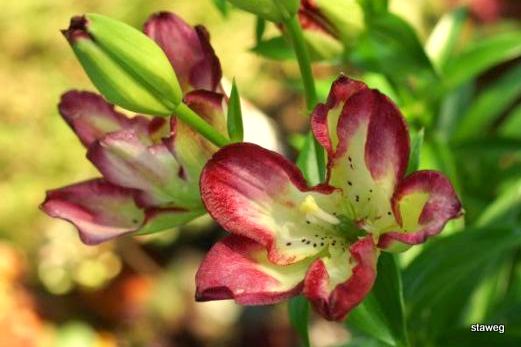To właściwie unikatowa odmiana mieszańców azjatyckich o dwukolorowych kwiatach. Bywają biało-wiśniowe, ale też zielono- i żółtawo-wiśniowe. Podstawowy kolor zależny jest od temperatury w jakiej lilie te zakwitają, a zatem mogą być swoistą niespodzianką każdego roku.