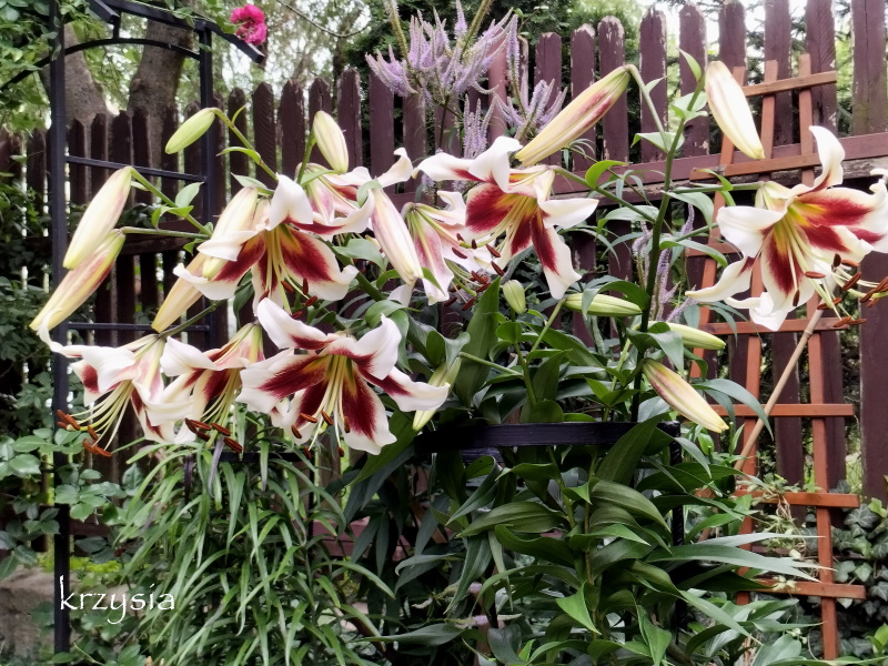 Moje wszystkie lilie w donicach, niektóre prawie dobijają do 2 m, ale Beverly Dreams jest jedną z niższych, max 150 cm.