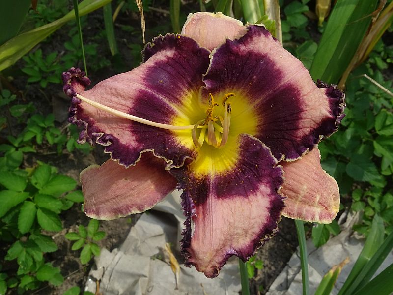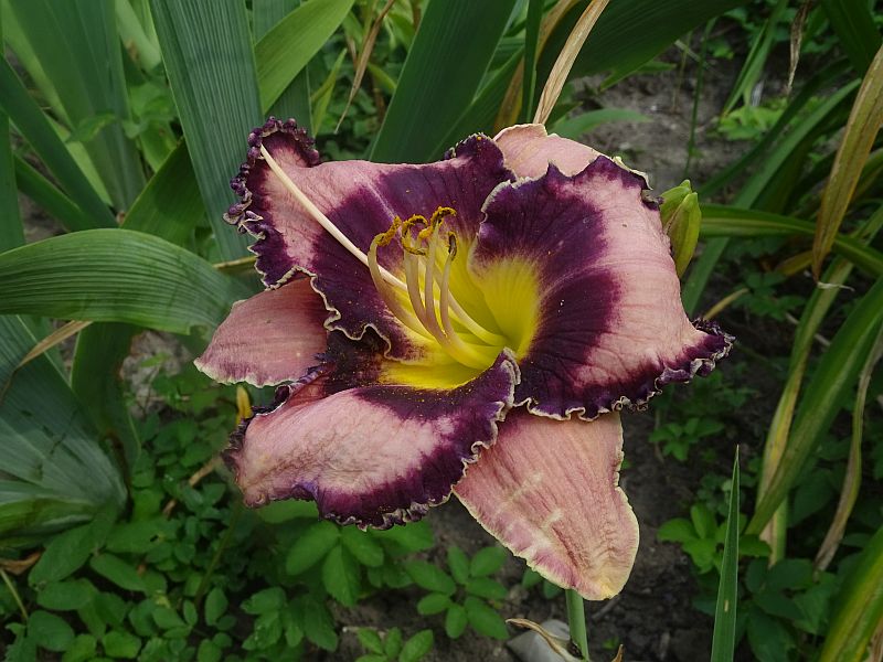 Hodowca: J.Bodalski 2015 Wysokość: ok 88 cm Kwiaty. Różowe z ciemno -purpurowym okiem i dwubarwną purpurowo - białą falbaną , zielona gardziel . Wielkość kwiatu ok 16,5 cm. Stanowisko: słoneczne do półcienistego. Mrozoodporność: zimuje bez okrycia. Uwagi : lekko pachnie