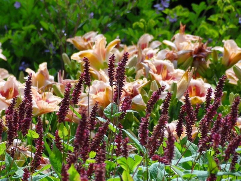 Liliowce rosną między czereśniami, którymi można się objadać do woli :mniam