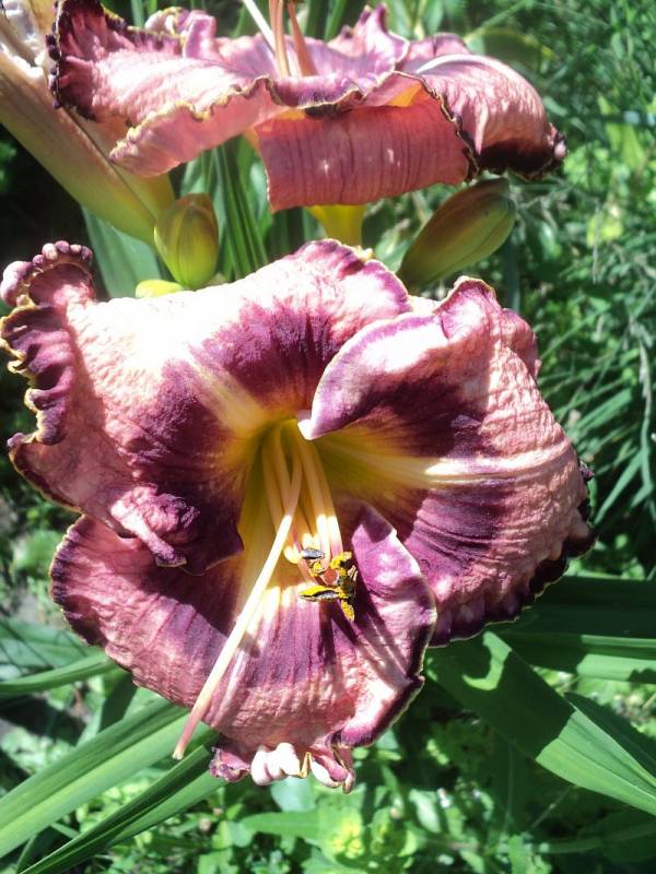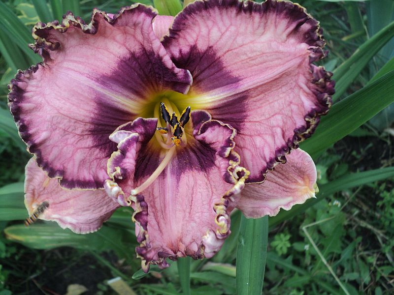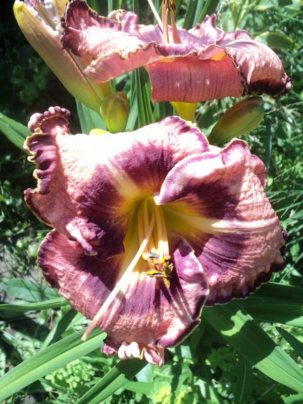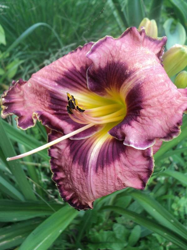 Hodowca: Petit , 2006 Wysokość: ok 60 - 70 cm Kwiaty:lawendowo - różowe , z fiolekowym okiem i krawędzią , zielono -żółtym gardłem i żółtym wykończeniem obrzeży płatków , średnica kwiatu ok 16 cm.Płatki szerokie , mięsiste , marszczone.