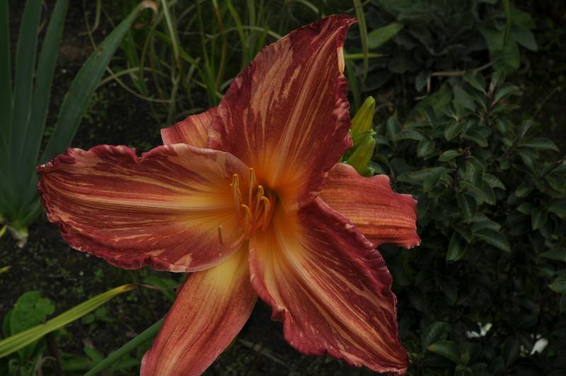 Bardzo efektowny i okazały liliowiec, nie dość, że wysoki, to jeszcze o dużych kwiatach o nietypowym wybarwieniu. Do tego kwitnie chyba najdłużej ze wszystkich posiadanych przeze mnie liliowców, zaczyna w czerwcu, a kończy we wrześniu. Przy czym kwitnie również całe lato, nie zauważyłam widocznej przerwy.