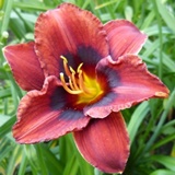 Czy ktoś z Was ma Spacecoast Devil's Eye i z jakiego źródła? Nie ma tej odmiany w spisie, więc tutaj zamieszczam pytanie. Chodzi o to, że znalazłam w Albamarze tą piękną odmianę, zdjęcia pokazowe (po lewej stronie) wzięte prawdopodobnie ze strony hybrydyzera, ukazują kwiat mocno winnoczerwony, ciemny, z wielkim czarnym okiem, z podwiniętymi płatkami, bez ciemnej mocno pomarszczonej falbanki. Natomiast zdjęcie poniżej tekstu ma prezentować "oferowaną sadzonkę", co zresztą jest wyróżnione większą kolorową (zieloną) czcionką. No i na tym zdjęciu jest zaprezentowany zupełnie inny kwiat - bladoróżowy z wąskim paskiem ciemnego oczka, raczej to halo a nie oczko, z wyprostowanymi płatkami i z bardzo ciemną pomarszczoną falbanką na 3 wewnętrznych petalach. W mojej opinii to inna odmiana, a egzemplarzy podobnych do tej właśnie mam kilka, różnią się nieznacznie szczegółami. Biorąc pod uwagę fakt, że według prawa kupuję to co jest oznaczone jako oferowana sadzonka, mam poważne obawy, że dostanę właśnie tą bladą sadzonkę, ponieważ to ona jest w ofercie.