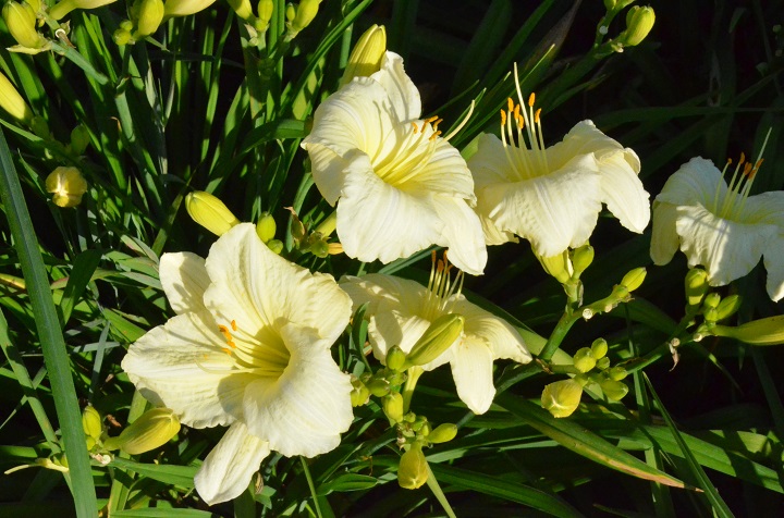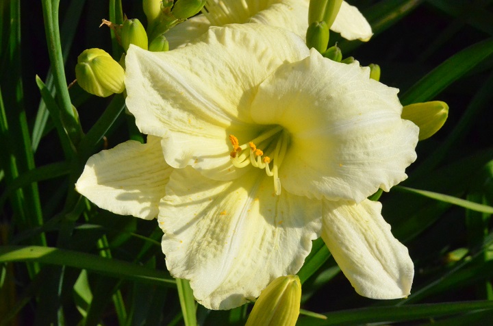 hodowca: Durio, 1977 wysokość: 60-70cm kwiat: o średnicy 15cm w kolorze kremowym z lekkim limonkowym odcieniem i zielonkawą gardzielą. termin kwitnienia: czerwiec-lipiec, może powtarzać kwitnienie