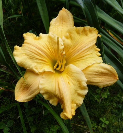 Hodowca Stamile, rok rejestracji w AHS - 1999 wysokość 65cm, kwiat 18 cm, pachnący, złoto-żółty z "płaskorzeźbą" (sculpted relief) na płatkach, może powtarzać kwitnienie