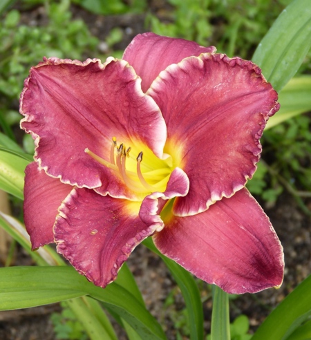 kwiat 12 cm, przydymiony "buraczkowy" (w oryginale burgundy) z żółto zieloną gardzielą