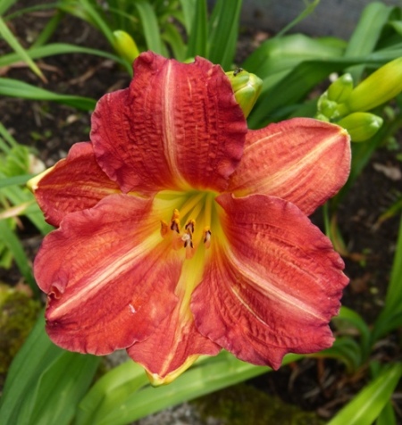 kwiat 10 cm, rdzawo czerwony z żółtą gardzielą