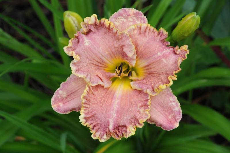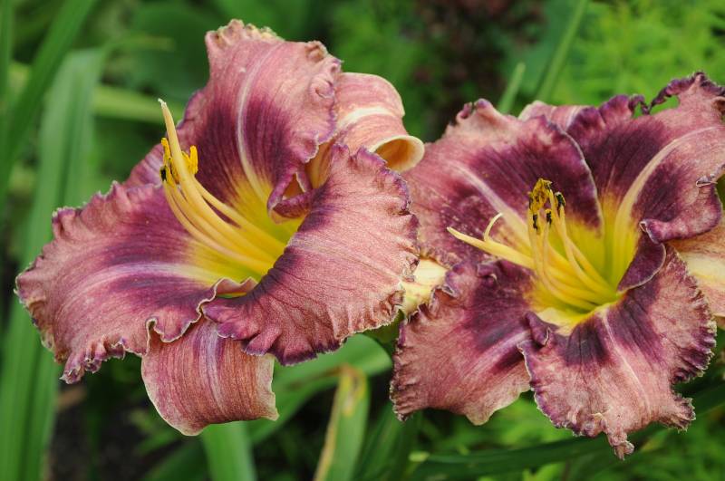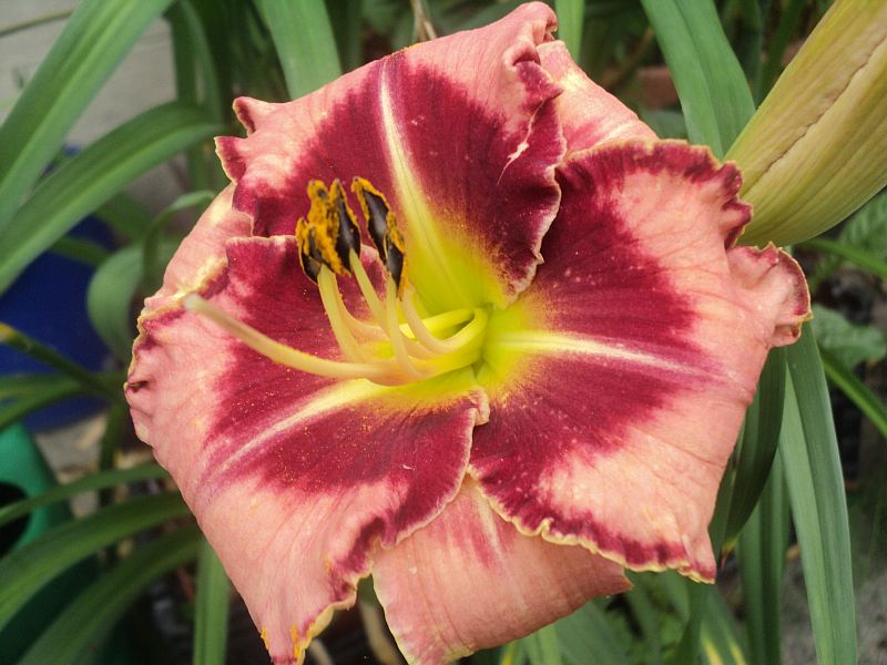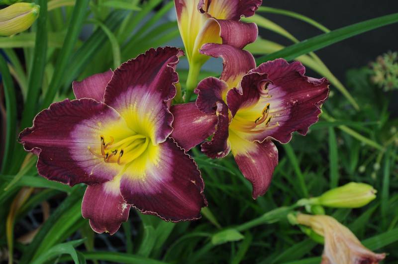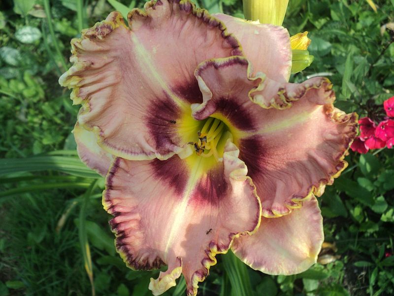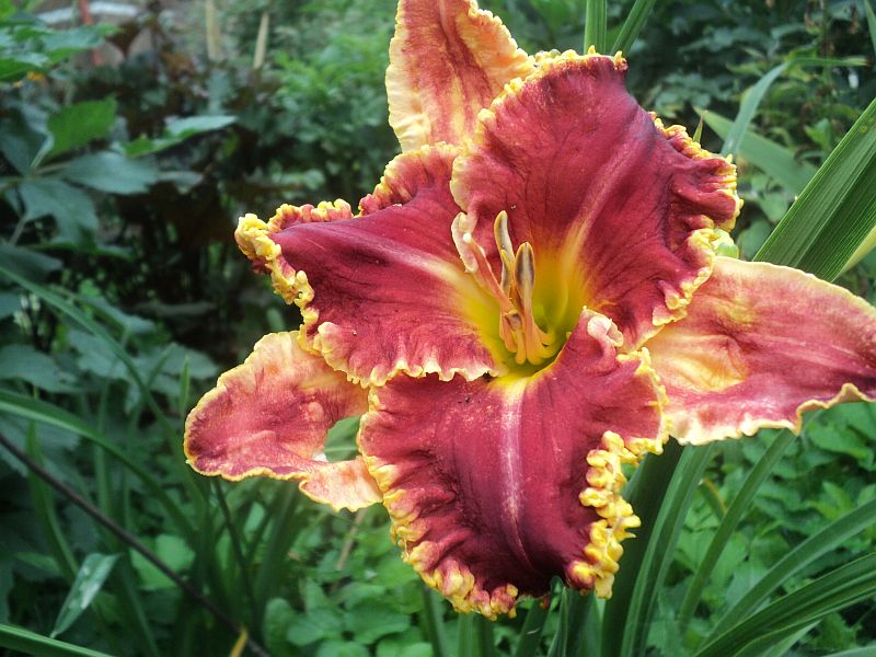 niestety Twój liliowiec, wg mnie, to nie ten właściwy. Za wąskie sepale i brakuje im chociaż namiastki falbaneczki. Płatki - nie taka faktura i zupełnie inny kształt "początku" gardzieli. U ciebie jest "okrągłe" a powinno być "trójkątne". link do AHS www.daylilies.org/DaylilyDB/detail.php?id=155914&name=Black%20Stockings. Tu zdjęcie jest trochę za ciemne ale za to łatwo wychwycić te różnice. Moja pończocha w wątku przedmiotowym...