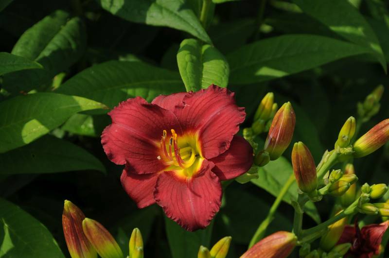 Little Red Dragon (też rzekomy ;)) jest dość niski, maks. 50cm, kwiat też nie za duży, większy od miniatur, ale nie za wiele. Zakwitł zdaje się w połowie lipca think: