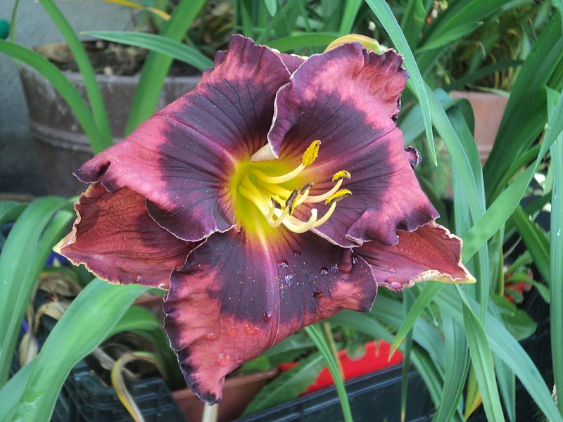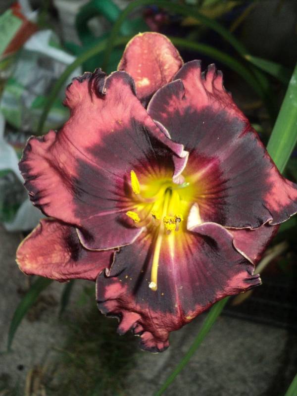 Wreszcie mam, clap hu_rra clap od Pani Haliny Bodusz z Daylilies Planet. Maluśki, tegoroczny zakup, ale jaki zdrowy i od razu zakwitł. Bardzo mi się podoba. Fotka pokazuje nieco przekłamane barwy, w rzeczywistości jest ciemniejszy :)
