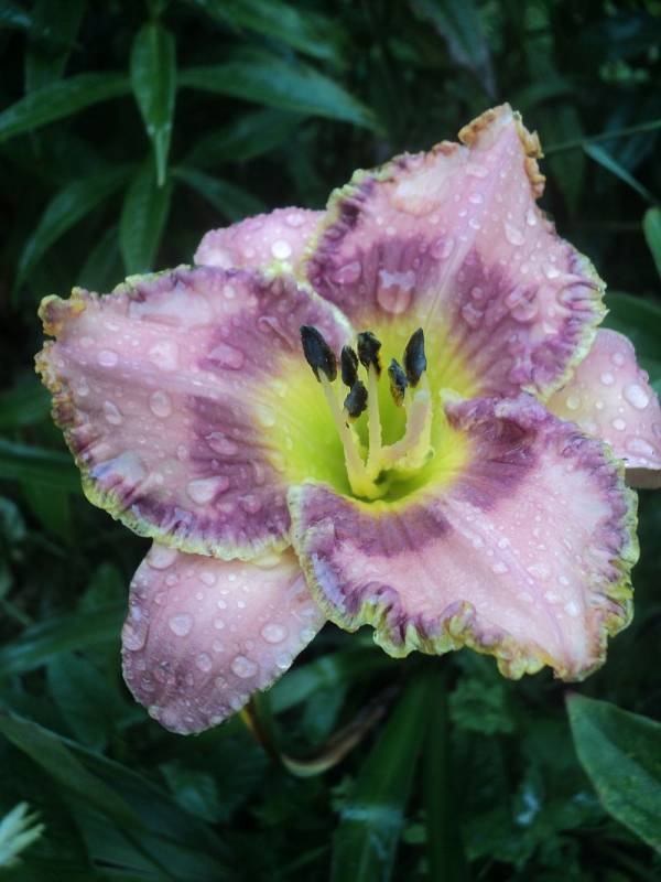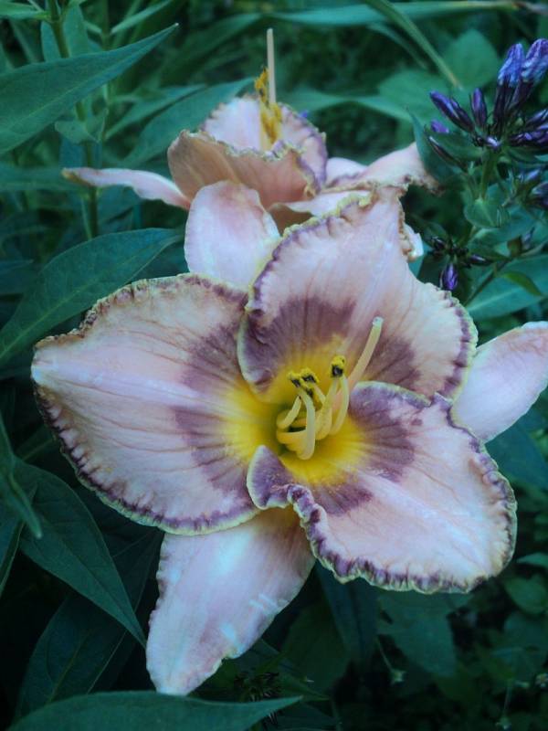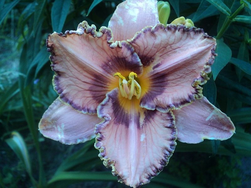 Hodowca: Yost, 2002 Wysokość: ok 70cm Kwiaty: kwiaty w kolorze różowo- lawendowym z ciemnym lawendowym okiem i lawendowo-zieloną falbaną , gardziel złota . Wielkość kwiatu ok 15 cm. Stanowisko: słoneczne do półcienistego. Mrozoodporność: zimuje bez okrycia .