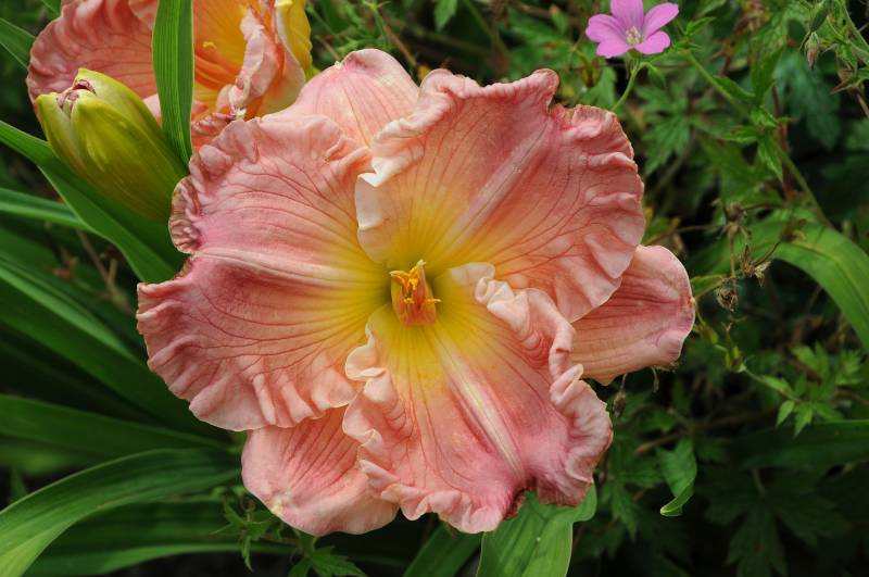 Hodowca: Henry-P., 1996 Wysokość: 60 cm Kwiat: 17-18 cm, spory kwiat w porównaniu do wysokości kępy, różowy z wyraźnymi żyłkami i zielonym gardłem. Płatki wykończone grubą falbaną. Termin kwitnienia: lipiec