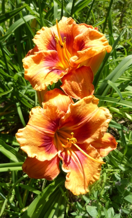 kwiat 10 cm, pomarańczowy z czerwonym okiem i żółtą gardzielą