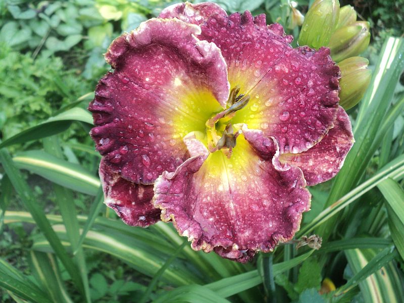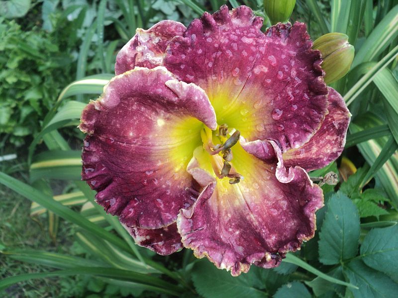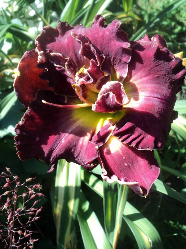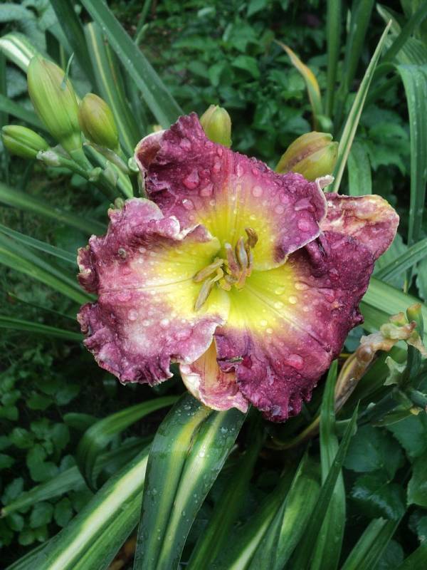 Hodowca: Carpenter-J., 2005 Wysokość: ok 60cm Kwiaty: kwiaty koloru purpurowo- fioletowego z lawendowym znakiem wodnym nad zielonym gardłem Wielkość kwiatu ok 15 cm. Stanowisko: słoneczne do półcienistego. Mrozoodporność: zimuje bez okrycia. Uwagi :zakwitł po trzech sezonach spędzonych u mnie , pierwsze kwiaty były pełne i nawet miałam wątpliwości czy odmiana nie jest pomylona ale kolejne kwiaty zrobiły się zgodne z wzorcem . Kwitnie długo i obficie..Liliowiec dla lubiących niespodzianki.
