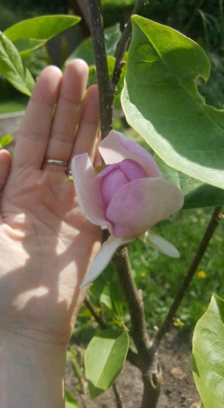 A teraz chciałabym się pochwalić, bo po pięciu latach uprawy zakwitła, po raz pierwszy magnolia parasolowata hu_rra hu_rra hu_rra