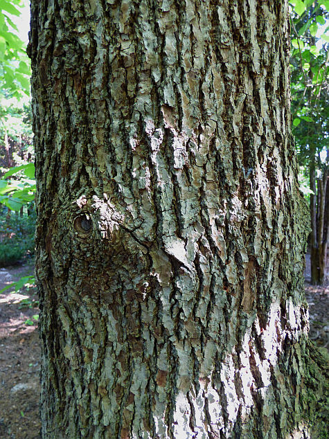 Pokrój: duże drzewo o stożkowym pokroju i prostym, pokrytym drobno spękaną korowiną, pniu.
