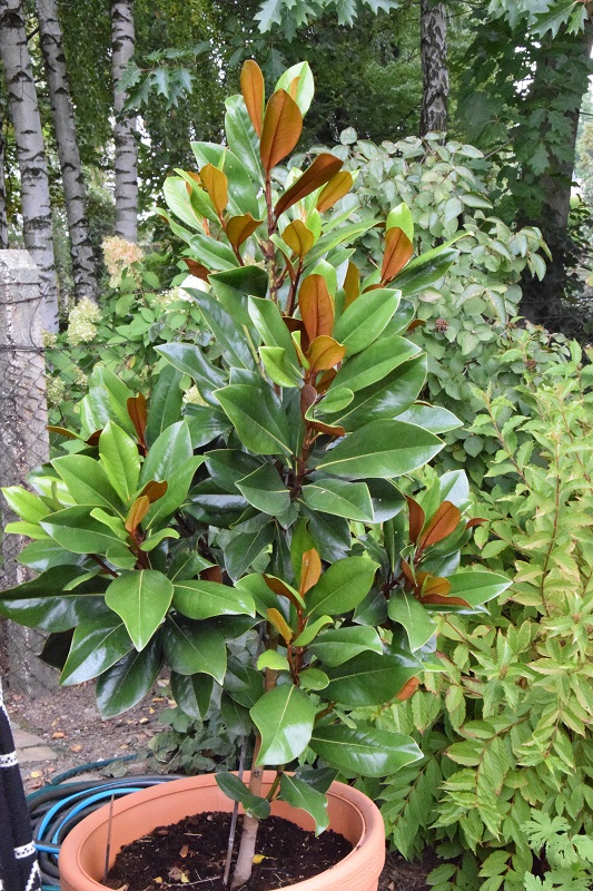 Zdjęcie zrobione 15.09.2018 r. w ogrodzie pokazowym Daglezja na Zielonej w Rykach. Pan Artur Maj (właściciel szkółki) mówił, że magnolia początkowo rosła w gruncie. Jednak zamiast przyrastać, raczej karlała. Podjęto więc decyzję o przesadzeniu ją do donicy i zimowaniu w tunelu.