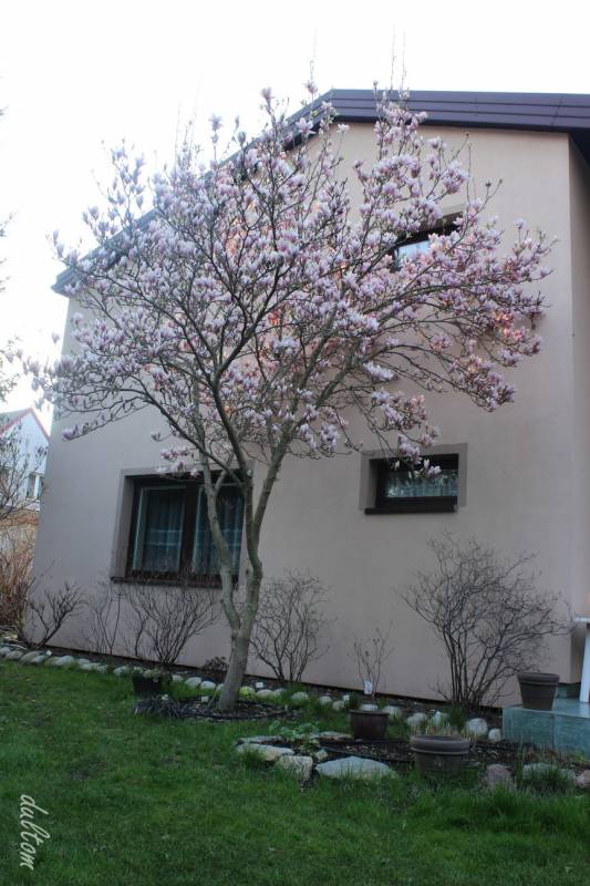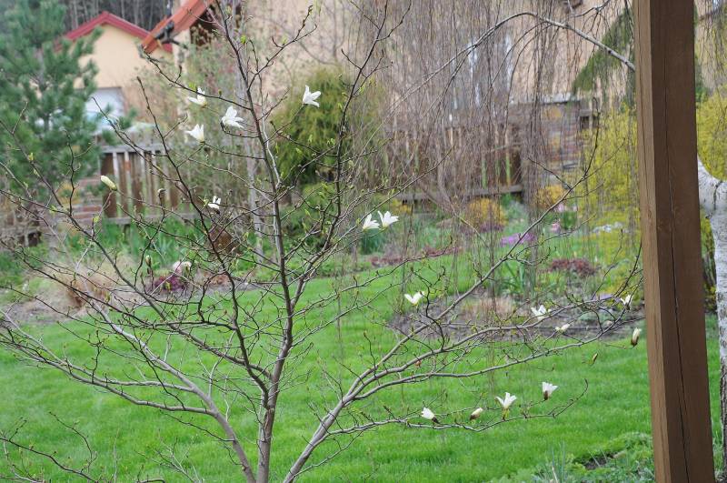 12 lat temu, kiedy sadziłam pierwsze rośliny w ogrodzie, nie mogło zabraknąc magnolii i padło na Aleksandrinę