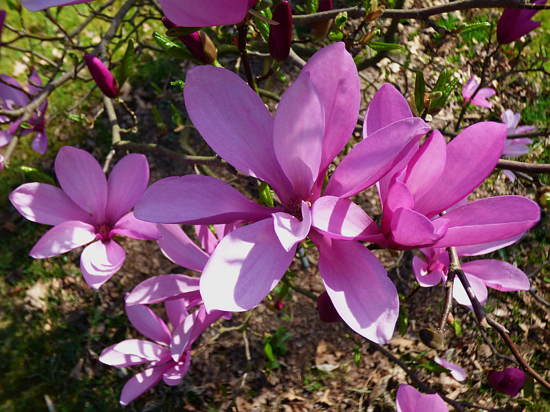 6 odmian powstało przez skrzyżowanie magnolii purpurowej (Magnolia liliiflora) ‘Nigra’ i magnolii gwiaździstej (Magnolia stellata) ‘Rosea’