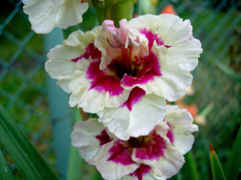 Gladiola Texas Girl od Anity (to ta sama pokazywana jako pokazówka przy wciornastku). Kwiaty nie uszkodzone (bo opryskałam w ostatnim momencie).