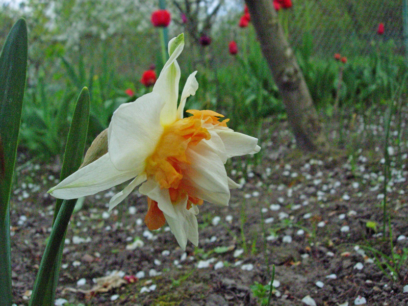 Narcyz książkowo powinien rosnąć najlepiej na glebie próchnicznej i stale wilgotnej. Hym... tego...u mnie w takich cud warunkach glebowych bezczelnie zanikał. Prawda jest taka że co ogród to mikroklimat i metodą prób i błędów trzeba sprawdzać jak to u nas cebulowe wiosenne rosną. Moja uprawa narcyzków odbywa się obecnie na piochach, niezbyt suchych wiosenną porą ale piochach. I co z tego że nie tak całkiem zgodnie z literaturą, grunt że rośnie. Narcyzy oprócz nawożenia od czasu do czasu (bez przesadyzmu) i odchwaszczania ich stanowisk nie wymagają specjalnych zabiegów pielęgnacyjnych. Raz na parę lat wykopuje się narcyzy pod koniec czerwca kiedy "zielenina" czyli liście są już zżółkłe, przebiera się je, selekcjonuje i odrywa cebulki przybyszowe, potem przechowuje się cebule w chłodnym i ciemnym pomieszczeniu, a następnie we wrześniu się je sadzi. Dobrze posadzić w inne miejsce albo wymienić ziemię na ich stanowisku.
