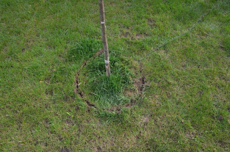 - zewnętrzy drut obwodowy z wewnętrznymi "wygrodzeniami" drzewek został połączony odcinkiem montowanym na trawie - może być problem przy wertykulacji - trzeba będzie uważać. Uważam to ze błąd montażowy - można to było wkopać ale wymagało by to ręcznej pracy - maszyna by nie ułożyła tego tak blisko siebie jak jest wymagane, tak więc montażysta poszedł na łatwiznę, a mnie zagadał i przekonał,że tak jest dobrze.
