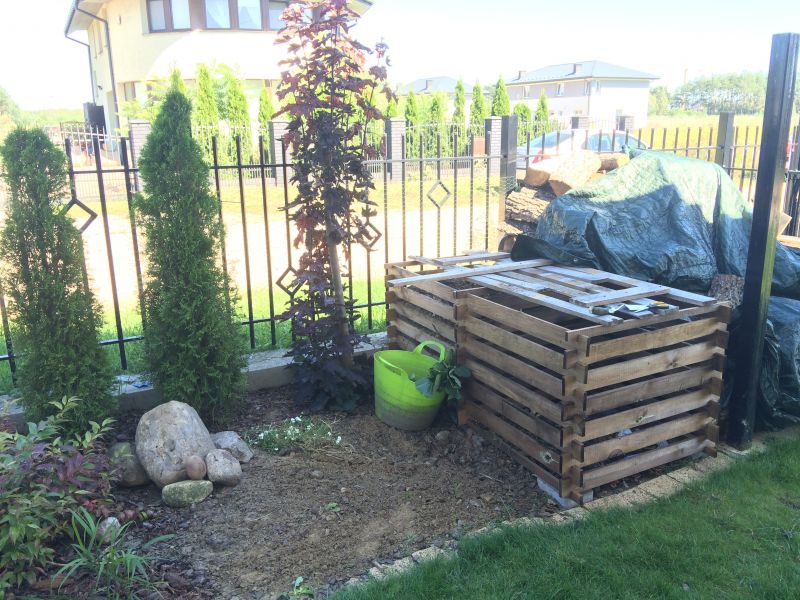 Mój kompostnik (każda z komór) ma wymiary (mniej-więcej) 1,2 m x 1,7 m (tak się ojcu przy budowie udało). Jak dotąd z przecinki gałęzi mam dostateczną ilość zrębków. Na naszych działkach jest rozdrabniarka do gałęzi (nie wiem jak bym sobie bez niej poradziła). Bardzo przestrzegam składowania warstwami. Dodaję tekturę, puste tekturowe rolki, pomimo, że nie mam dżdżownic kalifornijskich. Wrzucam chwasty - swoje oraz te pozostawione pod furtką przez sąsiadów (